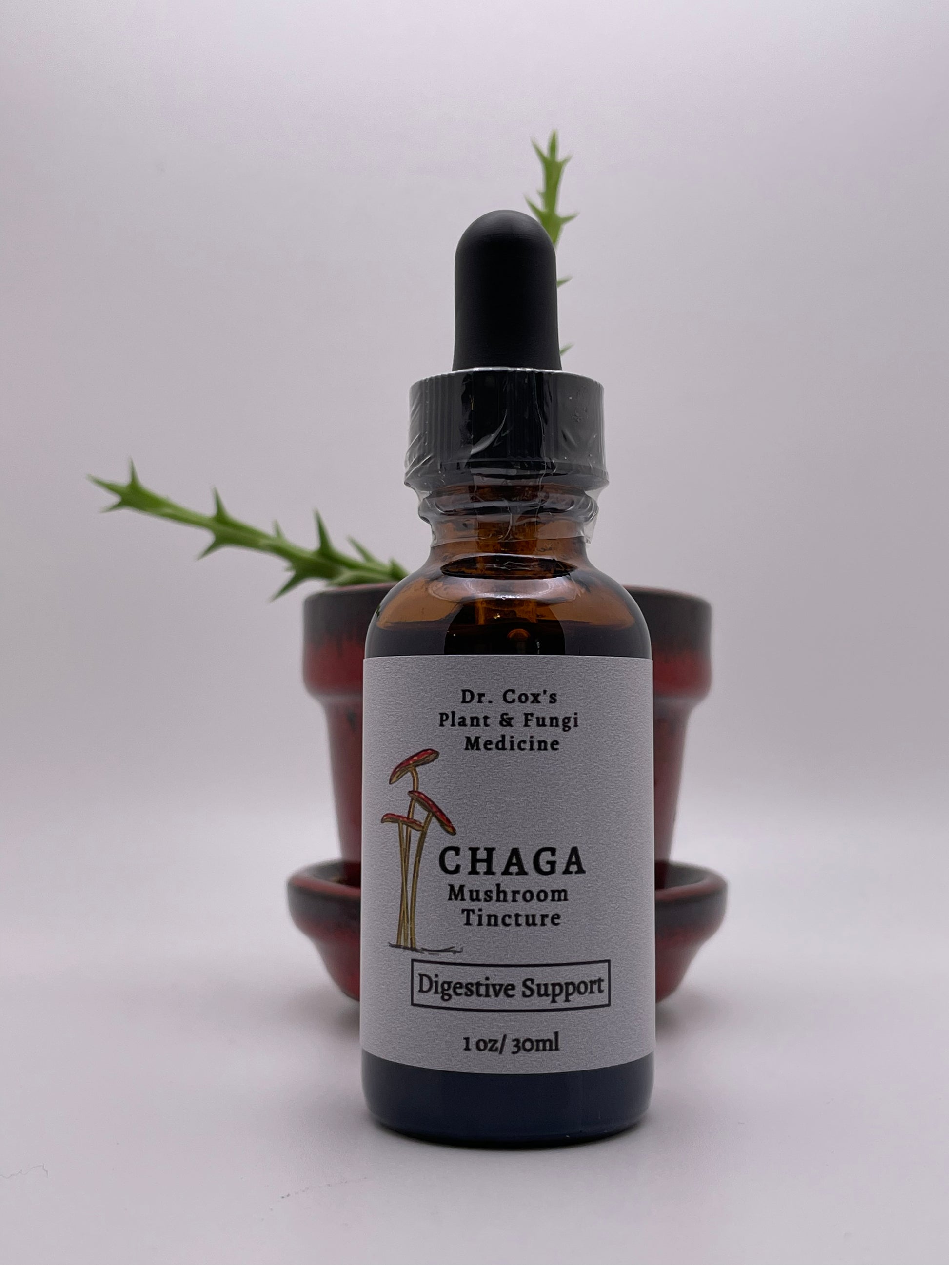 1-3 droppers in liquid per day. Antioxidant. May help with inflammation support, heart health, sugar balance, and aging. Organic Chaga Mushroom (fruiting body) double extracted with 190-proof grain alcohol and reverse osmosis water.