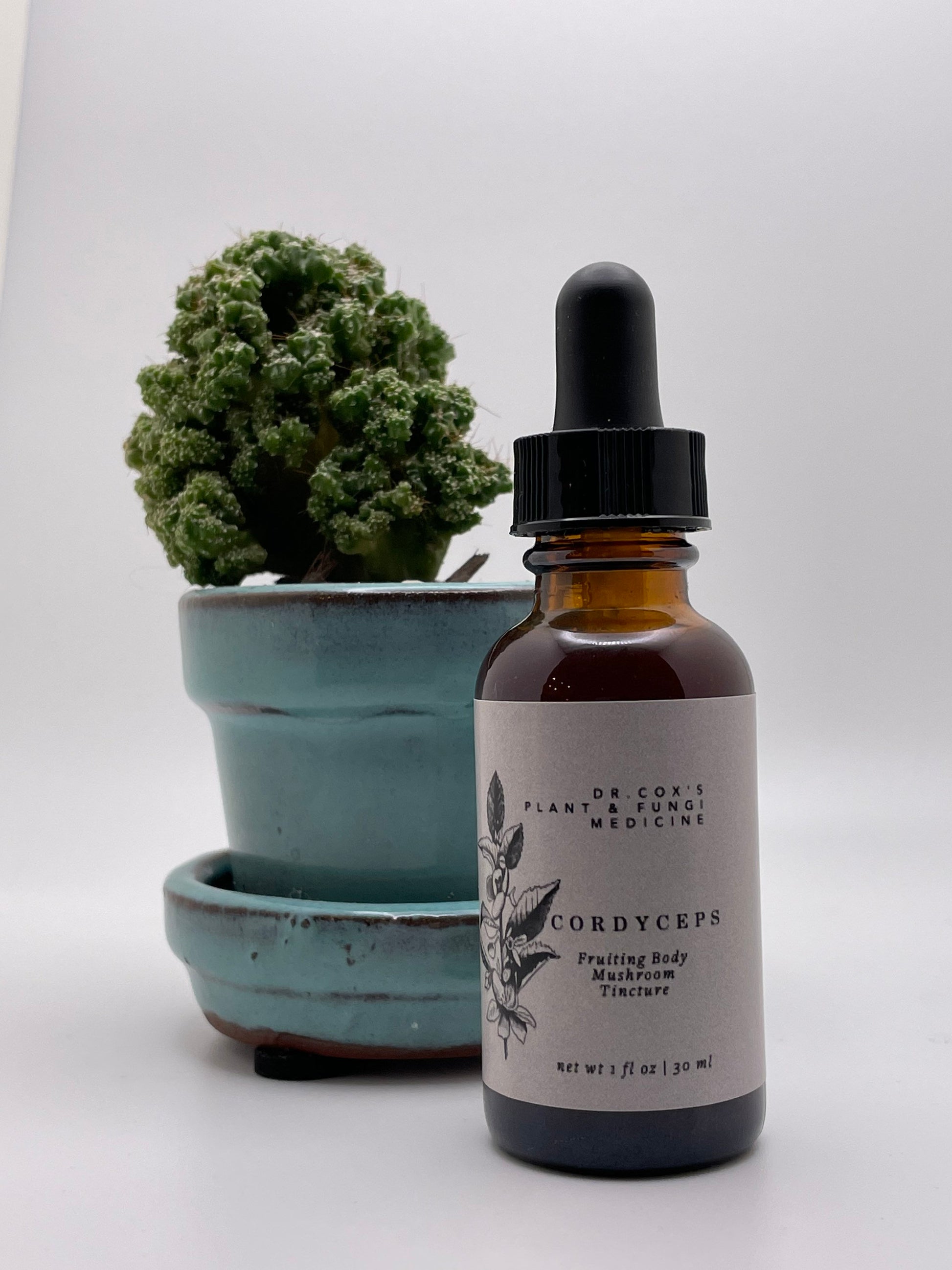 Organic Cordyceps Mushroom fruiting body mushroom tincture. Dual-extraction.