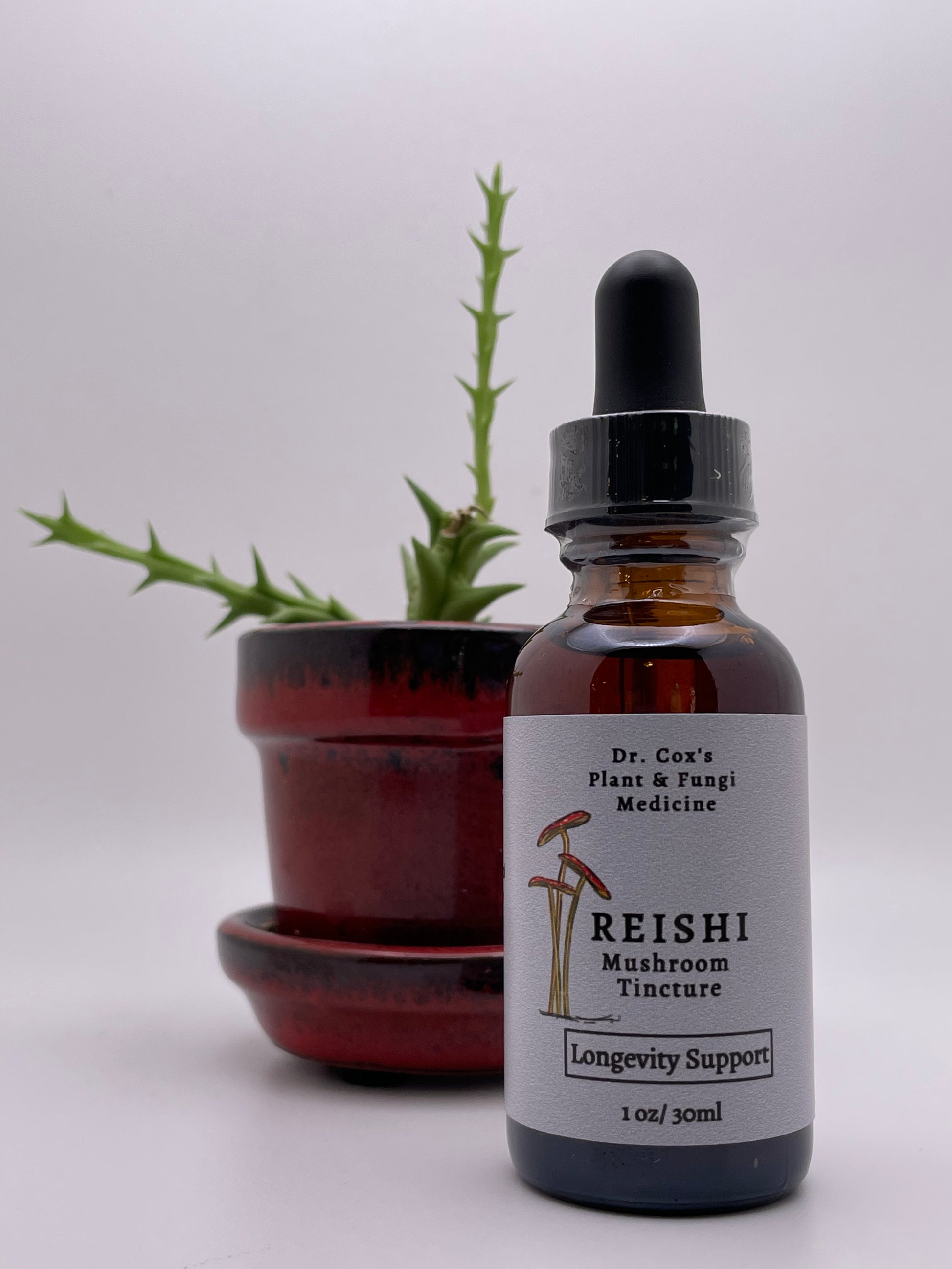 Organic Reishi Mushroom (fruiting body) double extracted with 190-proof grain alcohol and reverse osmosis water. May help with stress, improved sleep, fatigue, cholesterol support, heart health, and boosting mood.